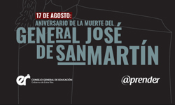 17 de agosto: aniversario de la muerte del General Josè de San Martín. Portal @prenderEl siguiente recurso y material didáctico elaborado por el Gobierno de Entre Ríos, cuenta con lecturas y actividades para trabajar en el aula el aniversario del fallecimiento del General San Martín. El 17 de agosto de 1850 moría en Boulogne-sur-Mer (Francia) el General José Francisco de San Martín. Había nacido el 25 de febrero de 1778 en Yapeyú (Corrientes). El accionar de San Martín fue central para el proceso de la independencia del país, contribuyendo no sólo a la independencia de la nación sino también a las de Chile y Perú. Es, junto con Simón Bolívar, la gran figura de la independencia de América del Sur.